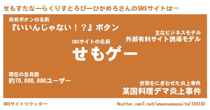 | ヘコむあだ名 | 『せももー』『豆乳』『せもお』 |