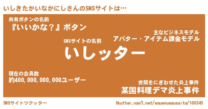 | 肩書あだ名 | 『いしきたかいなかにしCEO』 |