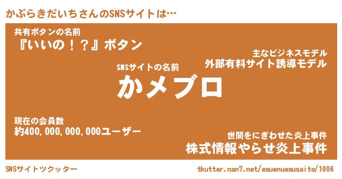 | 肩書あだ名 | 『かぶらきだいち社長』 |