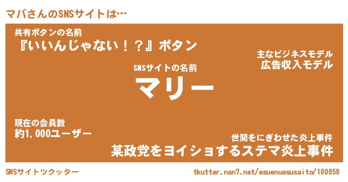 | ポケモン風あだ名 | 『マバチュウ』『マバダネ』『ヒマバ』 |