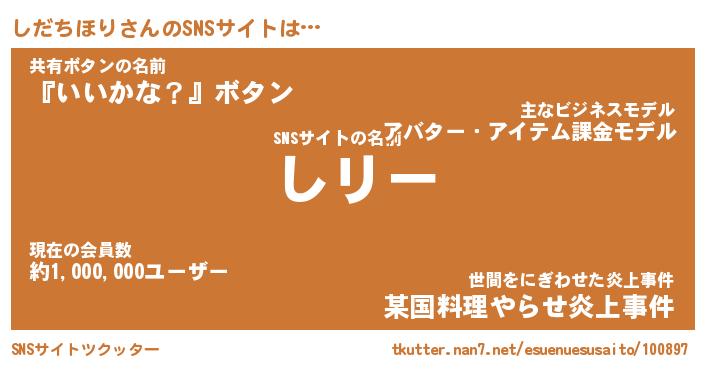 | ヘコむあだ名 | 『しだにゅー』『なまこ酢』 |