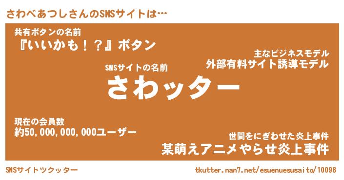 | 胡散臭い通販商品みたいなあだ名 | 『億万長者になれる霊験あらたかなお札…その名も「さわべあつし」』 |