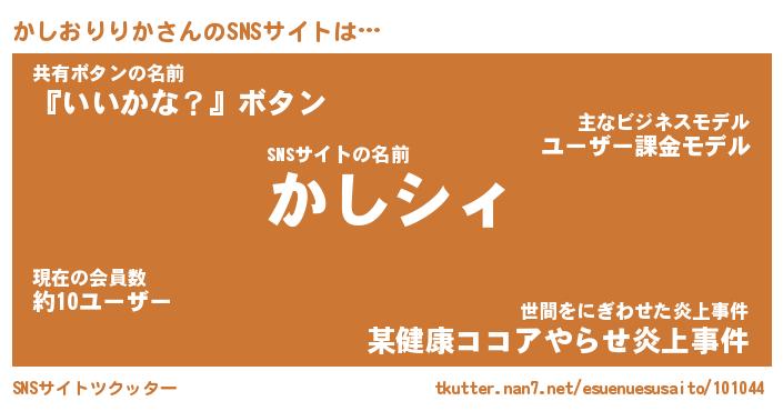 | 胡散臭い通販商品みたいなあだ名 | 『必ず成功するブレスレット…その名も「かしおりりか」』 |