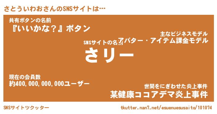 | ヒーロー風カッコイイあだ名 | 『スーパーサトウイワオ』『魔戒騎士サト』 |