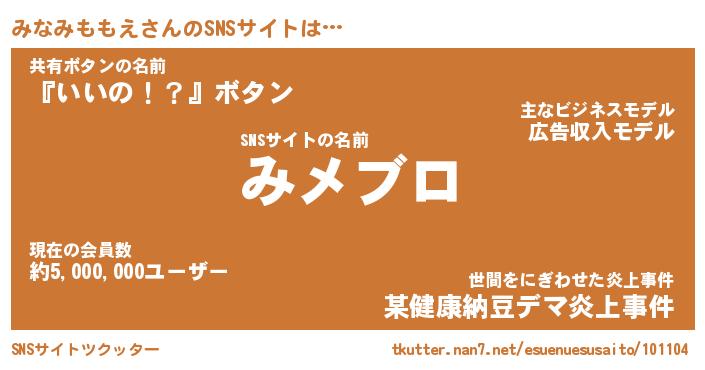 | 胡散臭い通販商品みたいなあだ名 | 『モテモテ間違いなし水晶球…その名も「みなみももえ」』 |