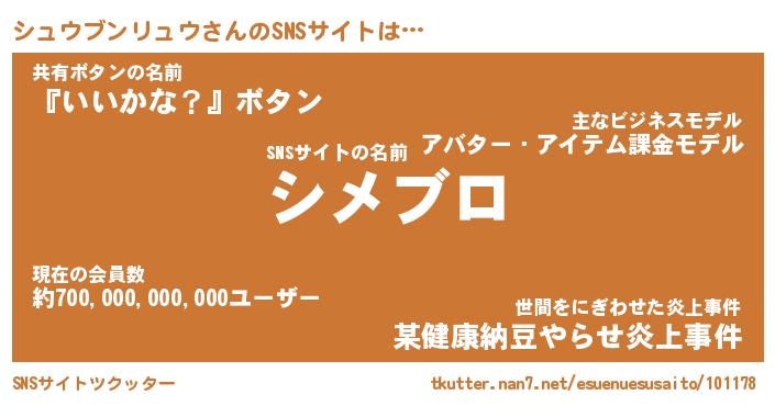 | ヘコむあだ名 | 『シュもー』『なまこ酢』『シュっ子』 |