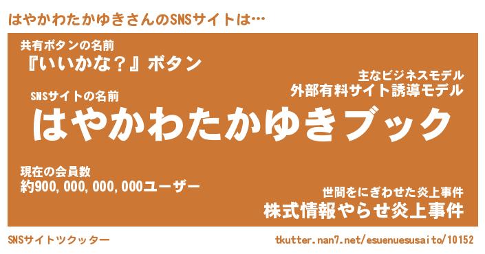 | 肩書あだ名 | 『はやかわたかゆき社長』 |