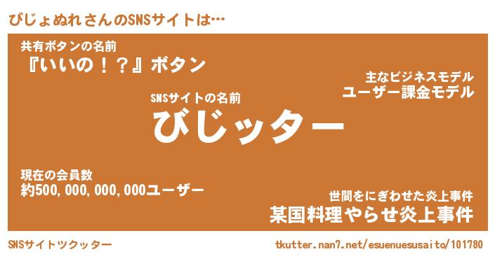 | 胡散臭い通販商品みたいなあだ名 | 『億万長者になれるブレスレット…その名も「びじょぬれ」』 |