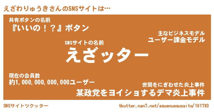 | 肩書あだ名 | 『えざわりゅうき社長』 |