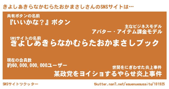 | 胡散臭い通販商品みたいなあだ名 | 『億万長者になれるブレスレット…その名も「きよしあきらなかむらたおかまさし」』 |