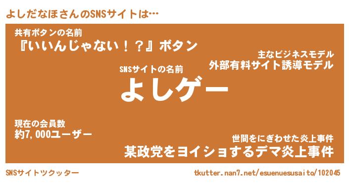 | ファンタジー風あだ名 | 『ヨシフェル』『エターナルヨシダナホー』 |