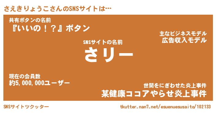 | ポケモン風あだ名 | 『サエチュウ』『サエキダネ』 |