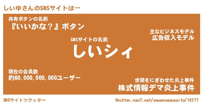 | 肩書あだ名 | 『しいゆCEO』『しいゆ国家主席』 |