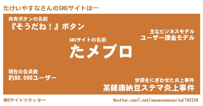| 肩書あだ名 | 『たけいやすなCEO』『たけいやすな大統領』 |