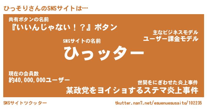 | 草はえルンゴwww …「ツクッター」 | 12月29日 07:12 |