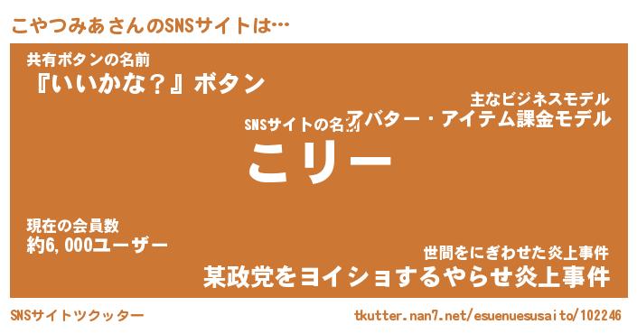 | ファンタジー風あだ名 | 『コヤフェル』『エターナルコヤツミアー』 |