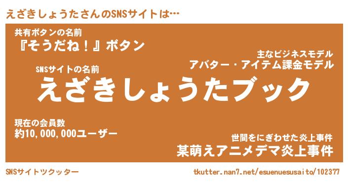 | 男性向けラノベタイトル風あだ名 | 『エザキショウタアートオンライン』 |