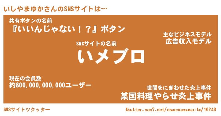 | ヘコむあだ名 | 『いしにー』『豆乳』『いしっちょ』 |