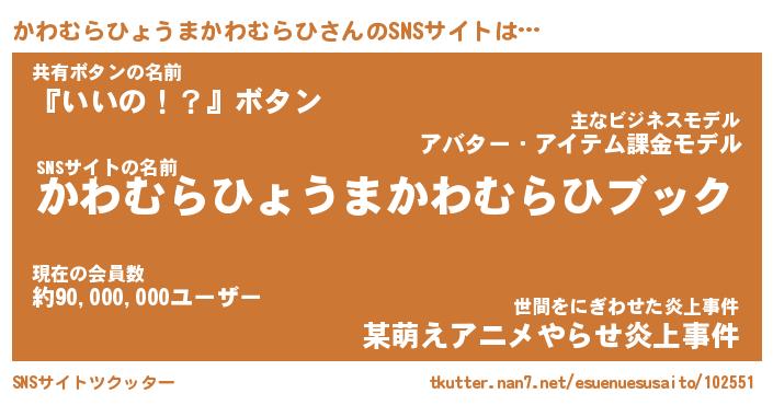 | 女子向けラノベタイトル風あだ名 | 『誰かこのかわむらひょうまかわむらひを説明してください! ~契約から始まるウェディング~』 |