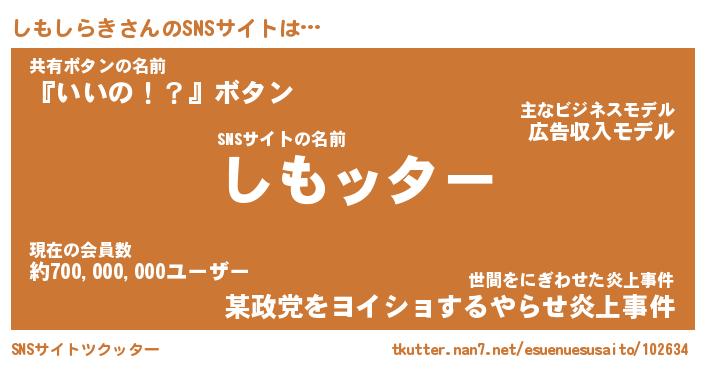 | 胡散臭い通販商品みたいなあだ名 | 『億万長者になれる水晶球…その名も「しもしらき」』 |