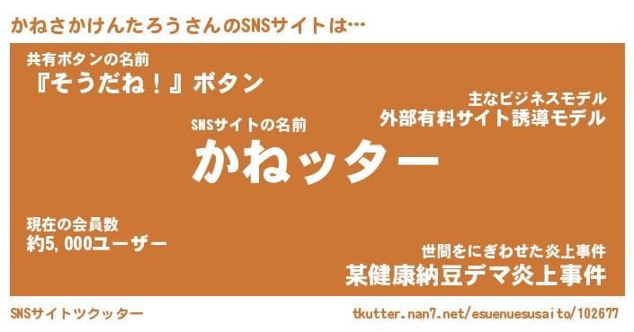 | 肩書あだ名 | 『かねさかけんたろう御曹司』 |
