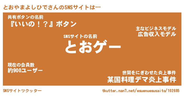 | ポケモン風あだ名 | 『トオチュウ』『トオヤダネ』 |