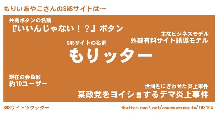 | 男性向けラノベタイトル風あだ名 | 『モリイアヤコアートオンライン』 |