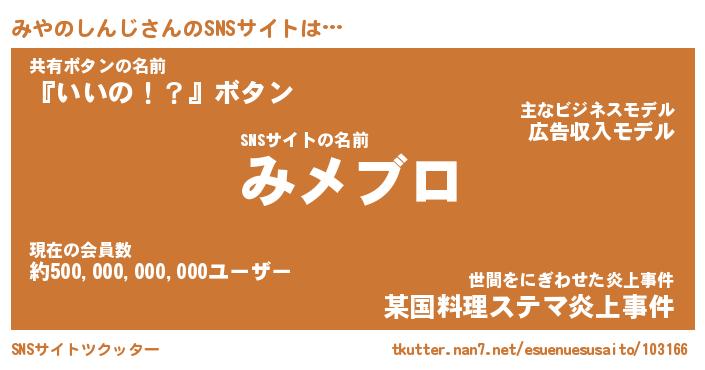 | ヒーロー風カッコイイあだ名 | 『スーパーミヤノシンジ』『炎刃騎士ミヤ』 |