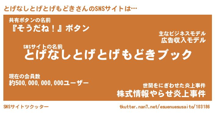 | 肩書あだ名 | 『とげなしとげとげもどき社長』 |