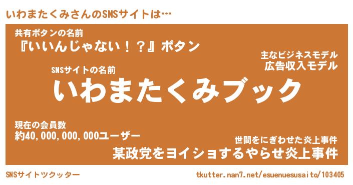 | 肩書あだ名 | 『いわまたくみ社長』『いわまたくみ教頭』 |