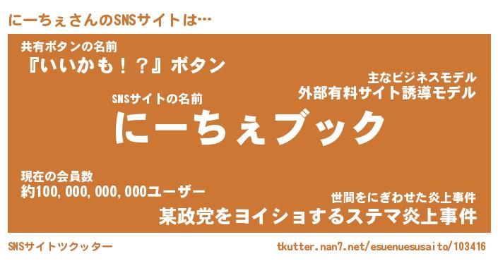 | 肩書あだ名 | 『にーちぇ社長』『にーちぇ総理大臣』 |