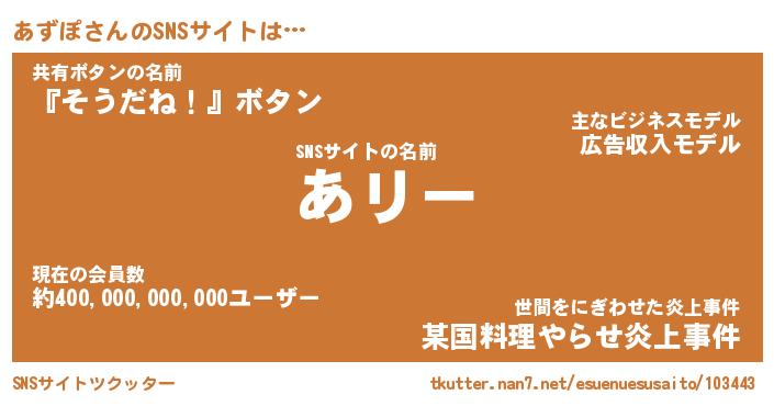 | 肩書あだ名 | 『あずぽCEO』『あずぽ国家主席』 |