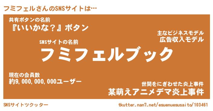 | 男性向けラノベタイトル風あだ名 | 『フミフェルアートオンライン』 |