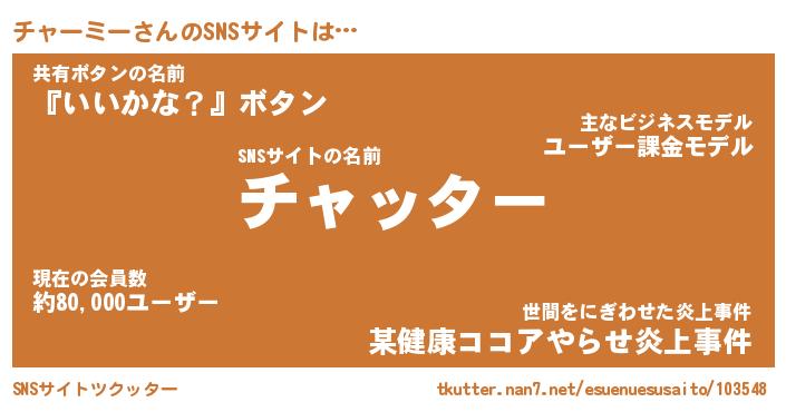 | ファンタジー風あだ名 | 『チャフェル』『エターナルチャーミーー』 |