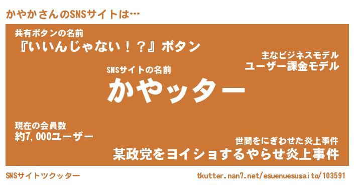 | ファンタジー風あだ名 | 『カヤフェル』『エターナルカヤカー』 |