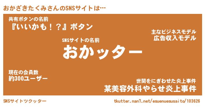 | 男性向けラノベタイトル風あだ名 | 『オカザキタクミアートオンライン』 |