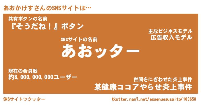 | 胡散臭い通販商品みたいなあだ名 | 『億万長者になれる水晶球…その名も「あおかけす」』 |