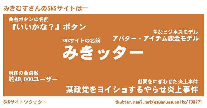 | 胡散臭い通販商品みたいなあだ名 | 『億万長者になれる霊験あらたかなお札…その名も「みきむす」』 |