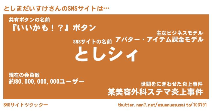 | 肩書あだ名 | 『としまだいすけ社長』 |