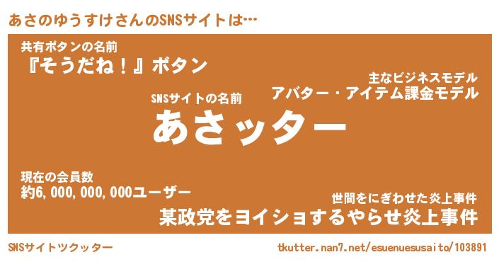 | 肩書あだ名 | 『あさのゆうすけ御曹司』 |