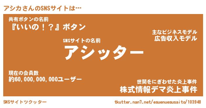 | 2回繰り返すあだ名 | 『アシアシ』『アアシシ』『いそいそ』 |