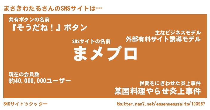 | 肩書あだ名 | 『まさきわたるCEO』『まさきわたる大統領』 |
