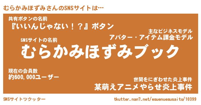 | 胡散臭い通販商品みたいなあだ名 | 『億万長者になれるブレスレット…その名も「むらかみほずみ」』 |