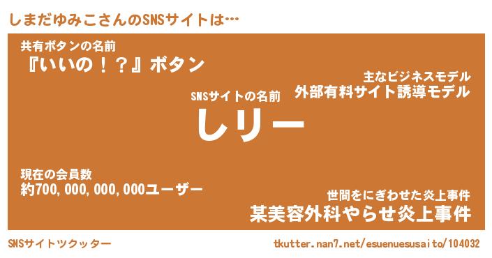 | 胡散臭い通販商品みたいなあだ名 | 『モテモテ間違いなし水晶球…その名も「しまだゆみこ」』 |