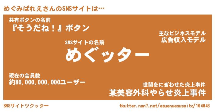 | 欧米人風あだ名 | 『マイケルめぐみばれえ』 |