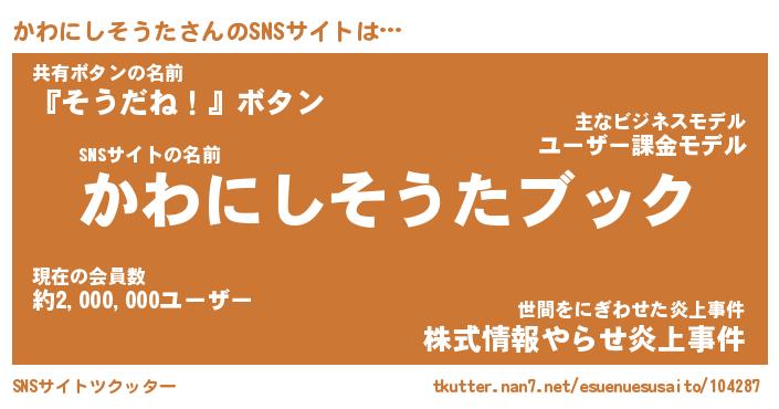 かわにしそうたさんのSNSサイトをツクッター!