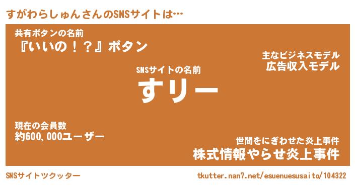 | 肩書あだ名 | 『すがわらしゅん御曹司』 |