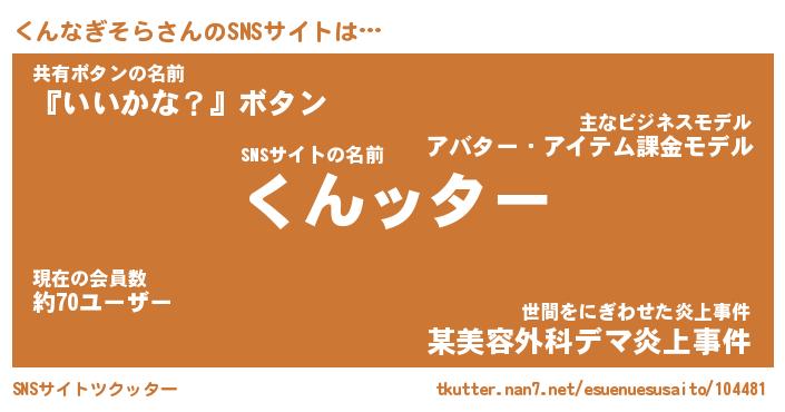 | 男性向けラノベタイトル風あだ名 | 『クンナギソラアートオンライン』 |