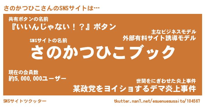 | 肩書あだ名 | 『さのかつひこ店長』『さのかつひこ班長』 |