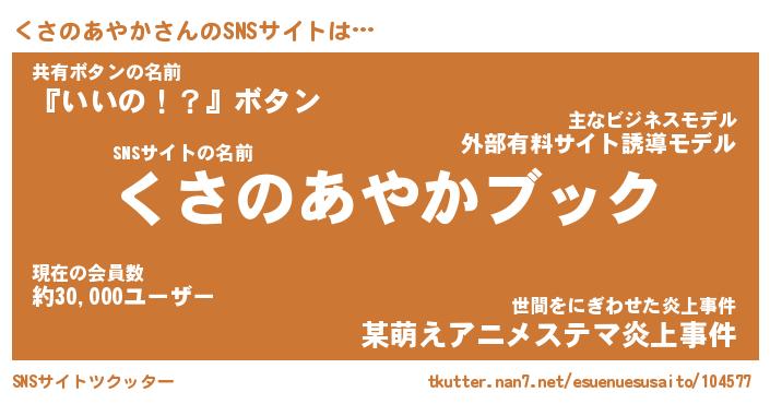 | 胡散臭い通販商品みたいなあだ名 | 『億万長者になれる霊験あらたかなお札…その名も「くさのあやか」』 |